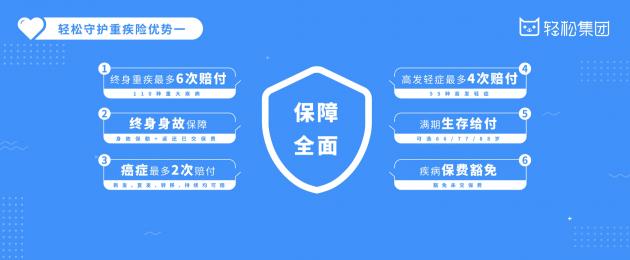 據了解,輕松守護重疾險涵蓋110種高發重疾,其中對疾病種類進行高達6次分(fēn)組,終身(shēn)重疾*多6次賠付,*大(dà)程度地解決了用戶患病後無保障的後顧之憂;對于高發輕症,輕松守護重大(dà)疾病保險采取不分(fēn)組,*多可(kě)賠4次,每次賠付30%基本保額,輕症保額*高可(kě)達120%基本保額;投保人(rén)患二次惡性腫瘤,不論新發、持續、複發、轉移或擴散,額外賠付100%基本保額(間隔期3年(nián),若**非癌症則等待期僅180天),充分(fēn)解決後續治療經費不足的問(wèn)題;輕松守護還(hái)設置了重大(dà)疾病保險将附加二次惡性腫瘤保障列爲可(kě)選責任,總保費僅增加10%,投保人(rén)可(kě)以靈活選擇,節省預算的同時又能與風(fēng)險維持相(xiàng)對平衡